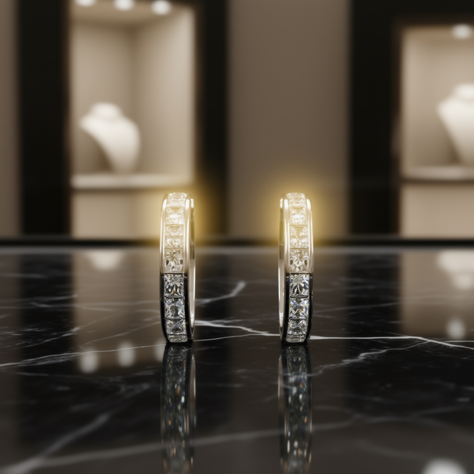 Champagne White 925 Silver Huggie Earrings With Crystal Rhinestone Channel Setting Classic Women's Everyday Wear Jewelry