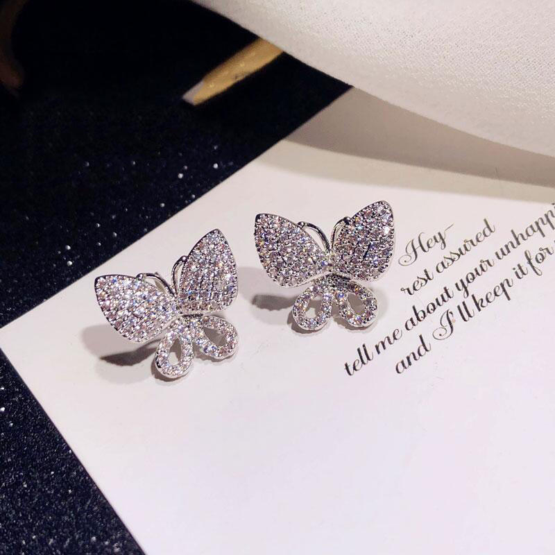 Champagne White Butterfly Diamond Earrings For Women White Gold Natural Diamond Party Jewelry