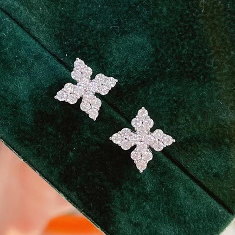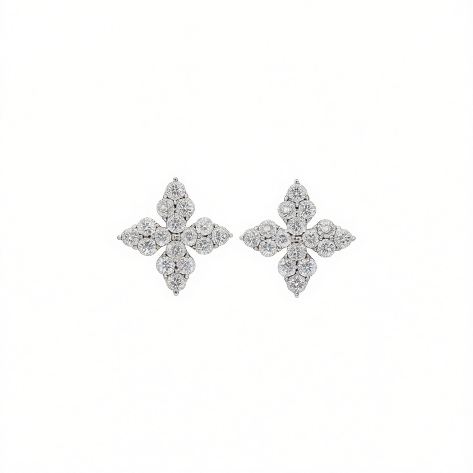 Champagne White Diamond Earrings Round Brilliant Cut Natural G Color White Gold Classic Women's Wedding Jewelry
