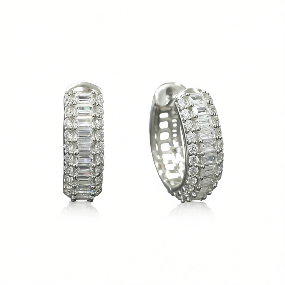 Champagne White Diamond Earrings Women's Luxury Baguette Cut Natural Diamond White Gold Wedding Jewelry