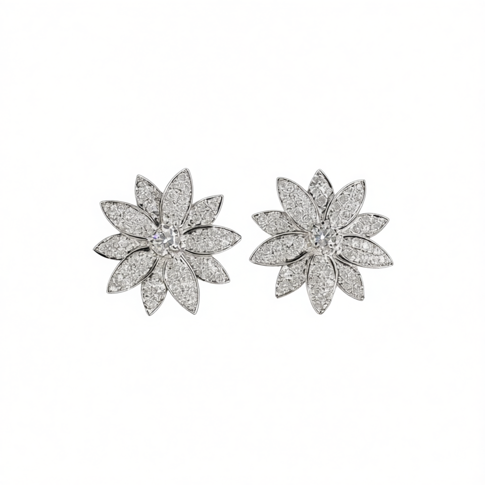 Champagne White Diamond Earrings Women's Luxury Round Brilliant Cut White Gold Wedding Fine Jewelry