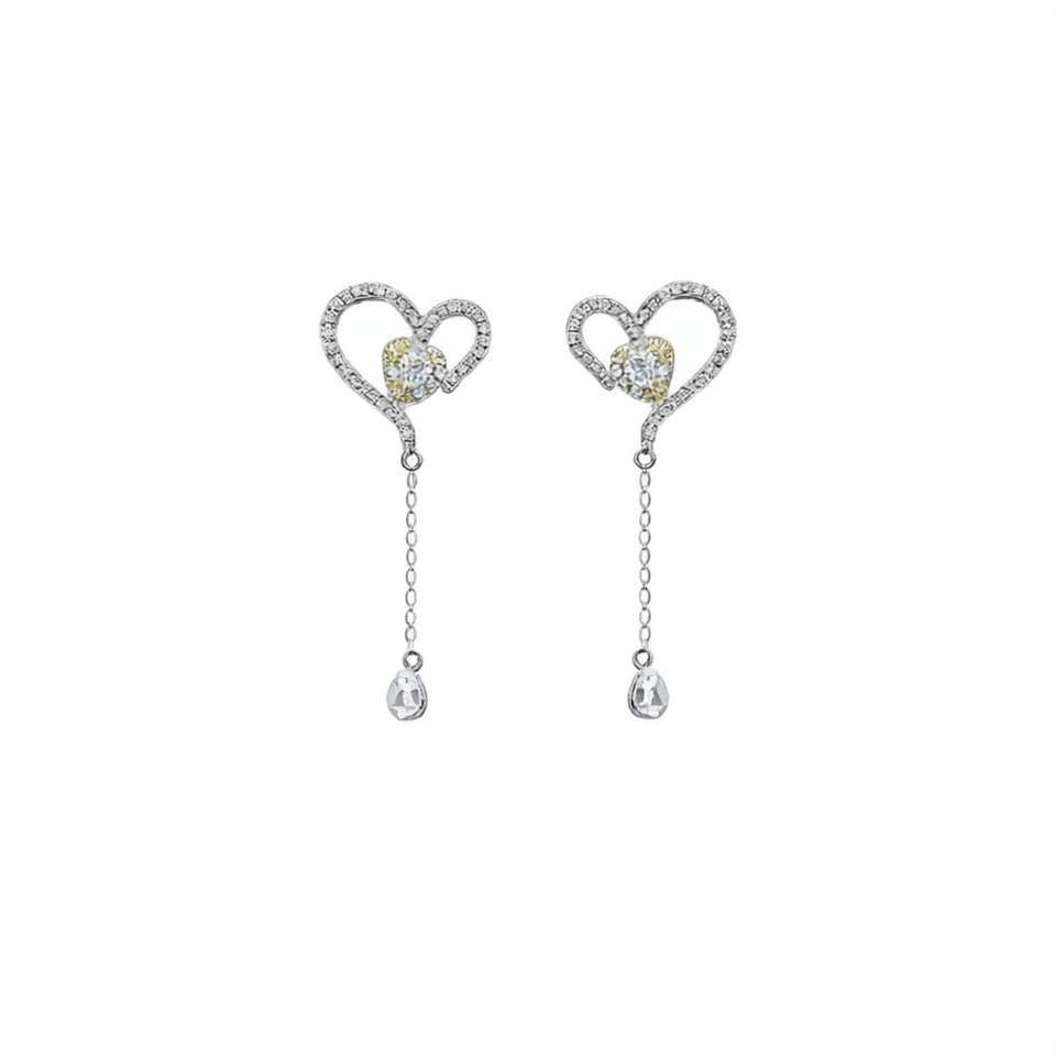Orecchini Pendenti in Cristallo Taglio Cuore Bianco Champagne, Montatura in Argento 925, Gioielli Romantici da Sposa per Donne