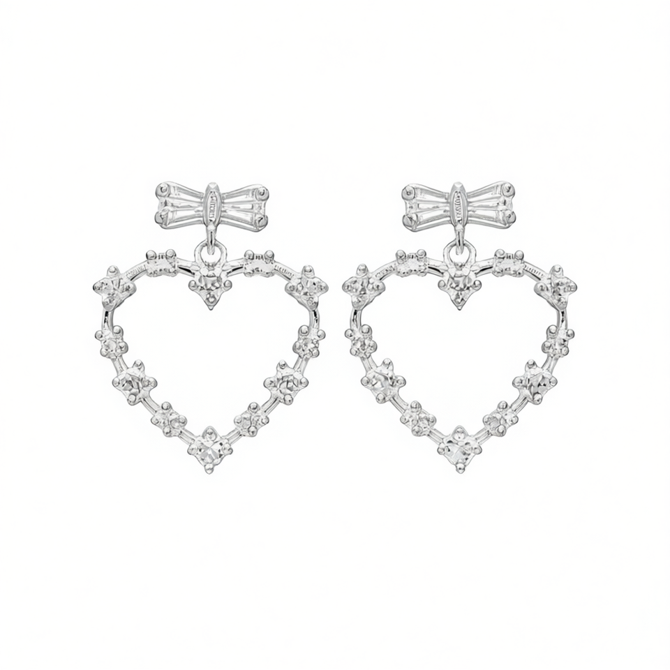 Champagne White Heart Drop Earrings 925 Silver Crystal Rhinestone Claw Setting Romantic Women's Wedding Jewelry