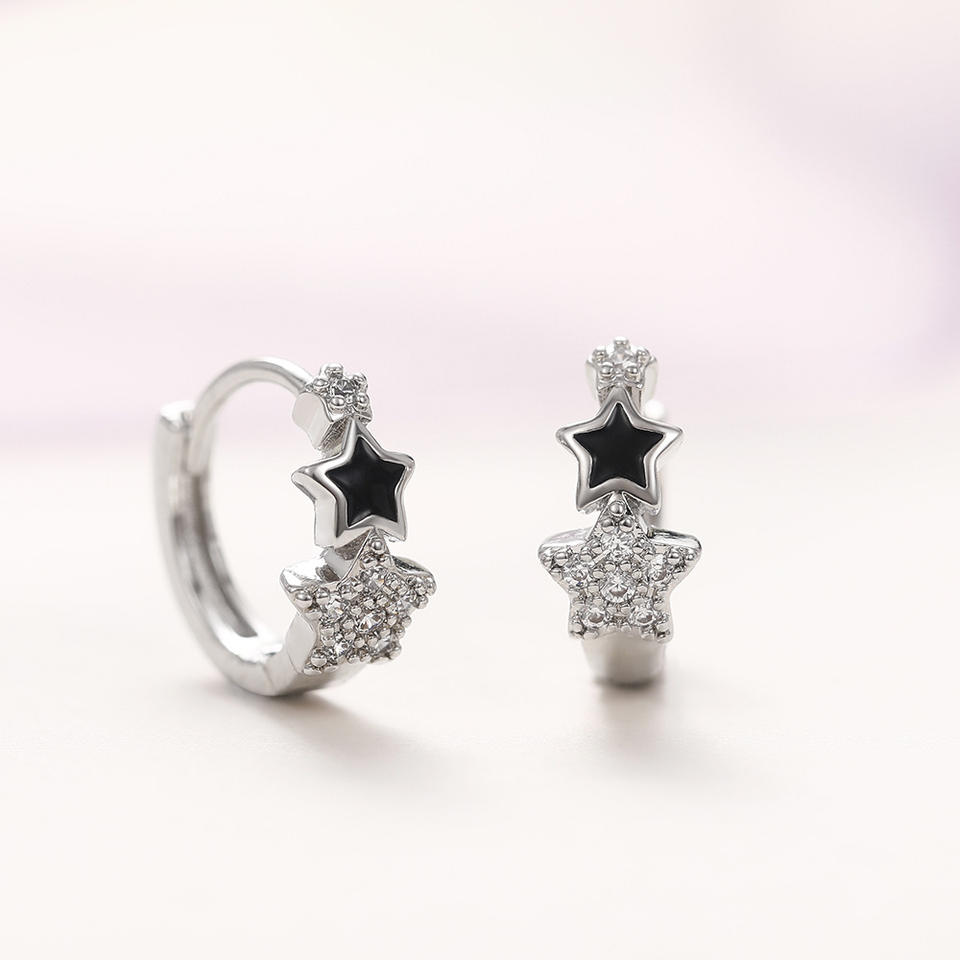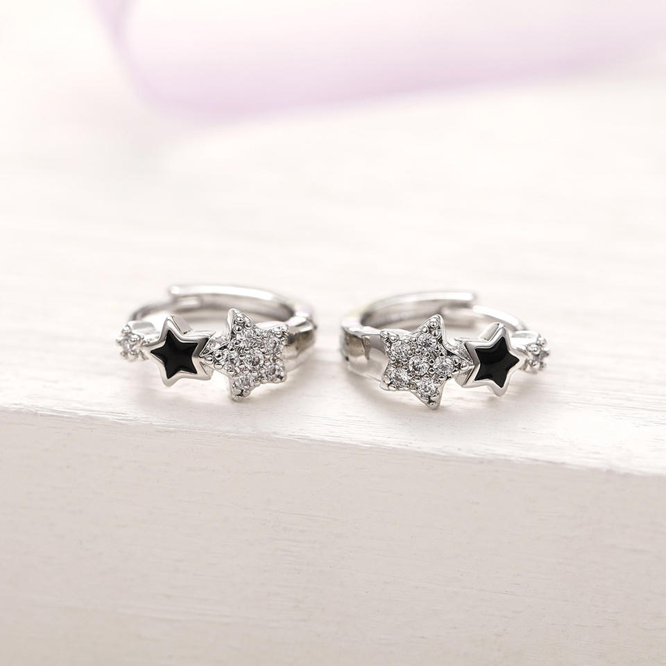 Champagne White Star Huggie Earrings 925 Silver Black Star Pave Setting Women Everyday Wear