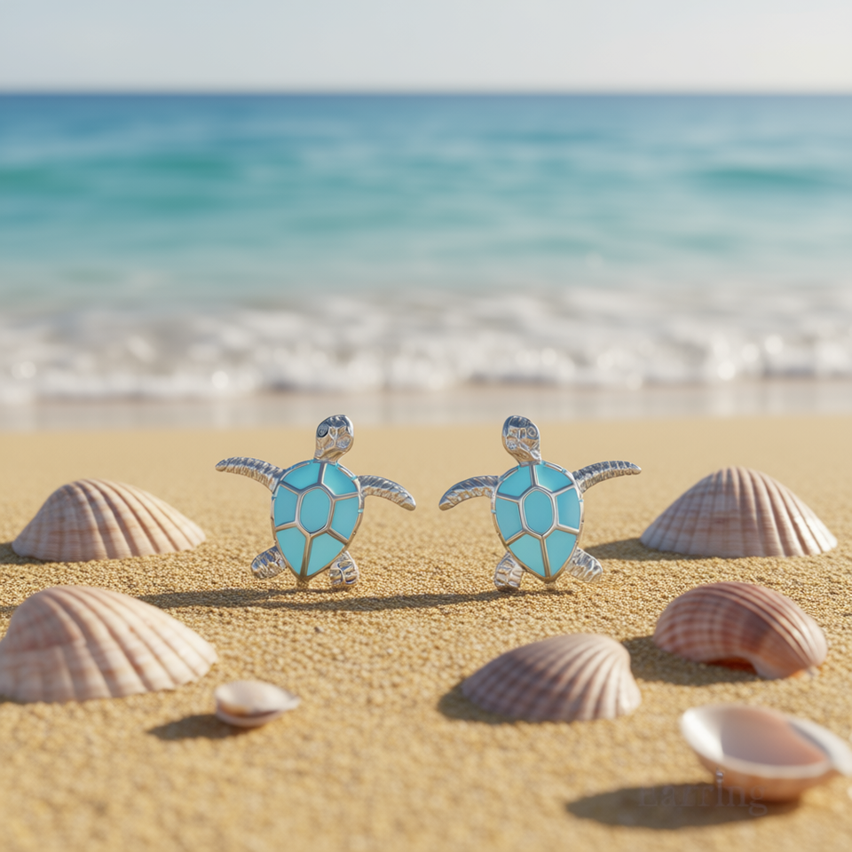 Champagne White Turtle Stud Earrings Silver Plated Alloy Fashion Animal Shape Earrings Unisex Jewelry E3594