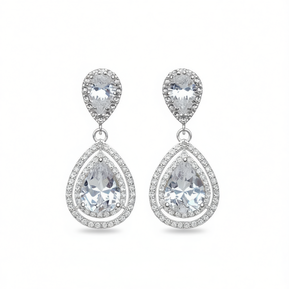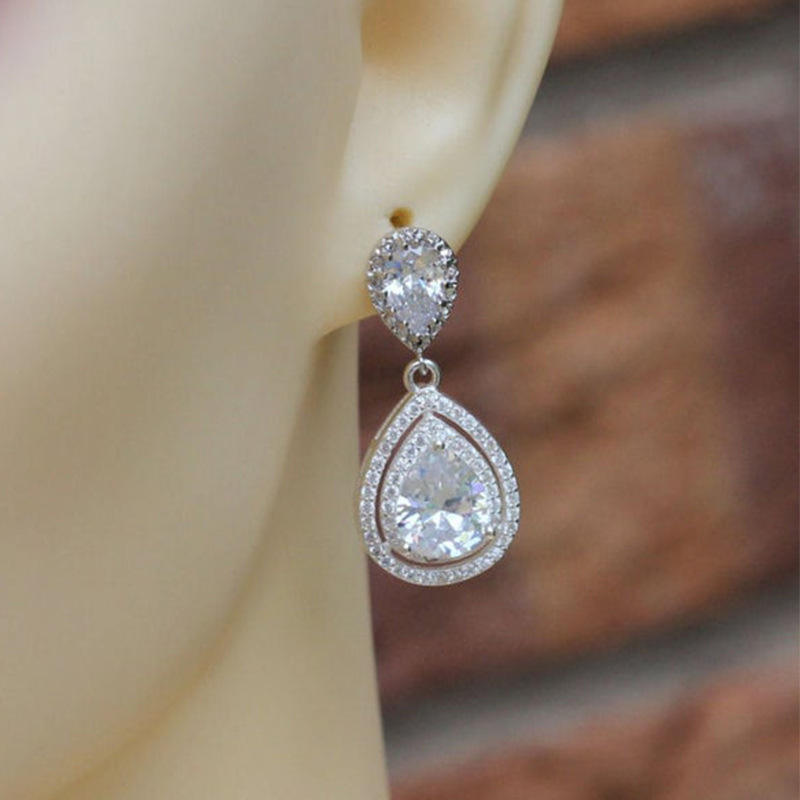 Champagne White Water Drop Crystal Earrings 925 Silver Bezel Setting Classic Wedding Drop Earrings For Women