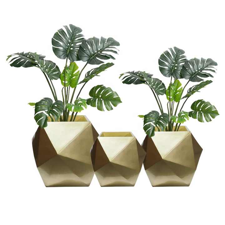 Champaign Gold Square Fiberglass Garden Pot Flowerpot Plant Pot Growing Vase