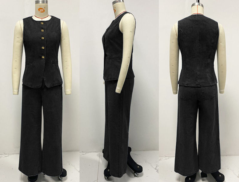 Canal 2024 moda senza maniche gilet in Denim con bottoni e Jeans a gamba larga, Set di pantaloni in Denim da donna 2 pezzi