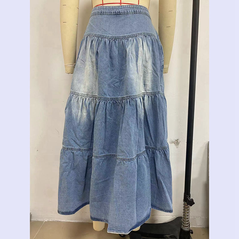 Canale 6 colori 2025 primavera estate Casual donna con bottoni a vita alta Boho jeans in jeans Maxi gonne con tasche