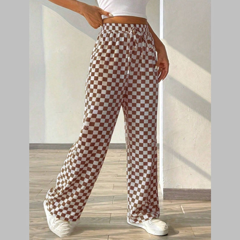 Pantaloni Lounge a quadri estivi alla moda con colori canal canal 7 pantaloni Casual a vita alta a quadri larghi donna