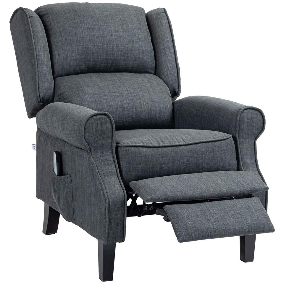Poltrona Reclinabile Wingback Grigio Antracite con Funzione Massaggio e Riscaldamento per Soggiorno
