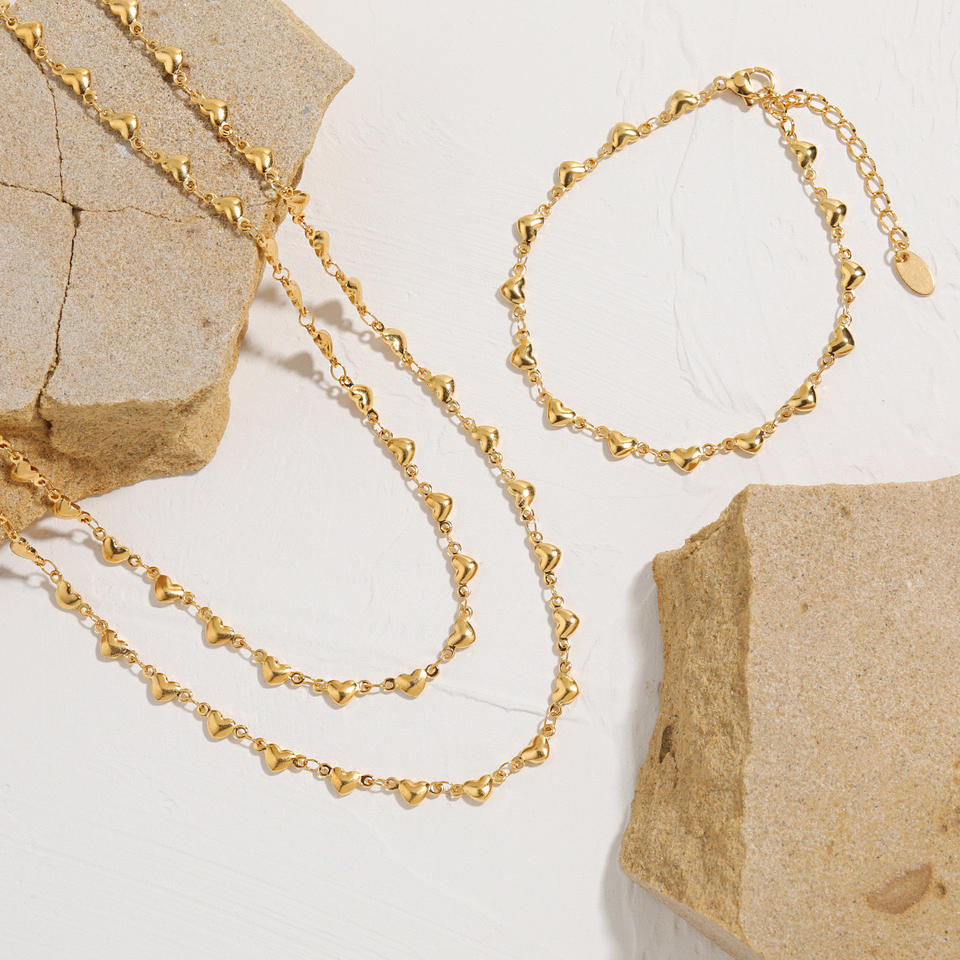 Mercanti di fabbrica di beneficenza 18K placcato oro cuore collana bracciale moda in acciaio inox gioielli Set per le donne