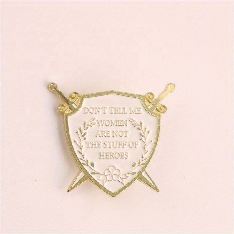 Affascinante accessorio con uno scudo bianco che trasmette un messaggio forte, ideale per chi è appassionato di estetica femminista ed eroica