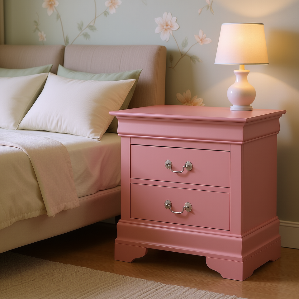 Traditional Pink Nightstand 2 Drawers Wood Storage Bedroom Furniture