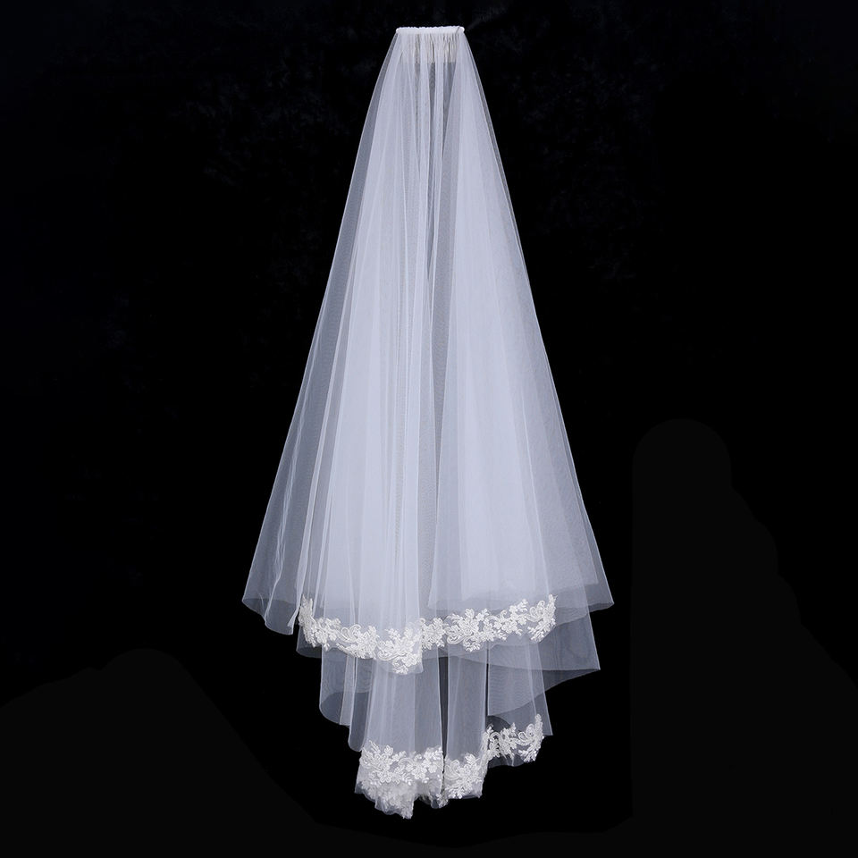 Affascinante due strati accessori da sposa morbidi bordo fiore di pizzo bianco velo di Tulle da sposa con pettine