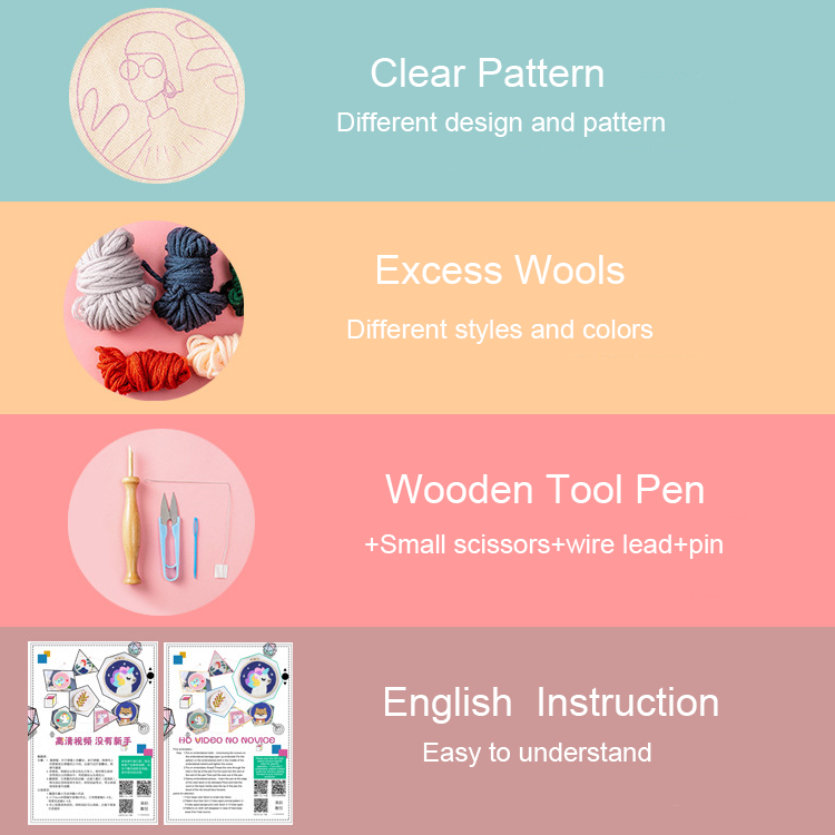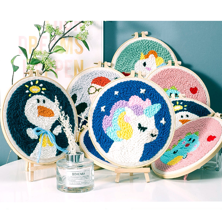 Charmkey Wholesale High Quality Embroidery Hoops Banch of DIY Punch Needle Kits 200 Patterns for Beginners Cross-stitch
