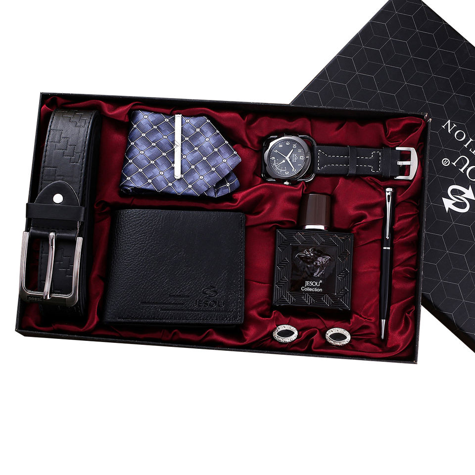 Cheap Business Male Enterprise Gift Wholesale Watch Wallet Tie Perfume Belt Set of 7 As a Gift