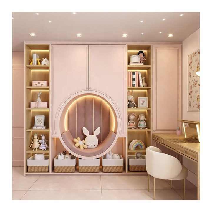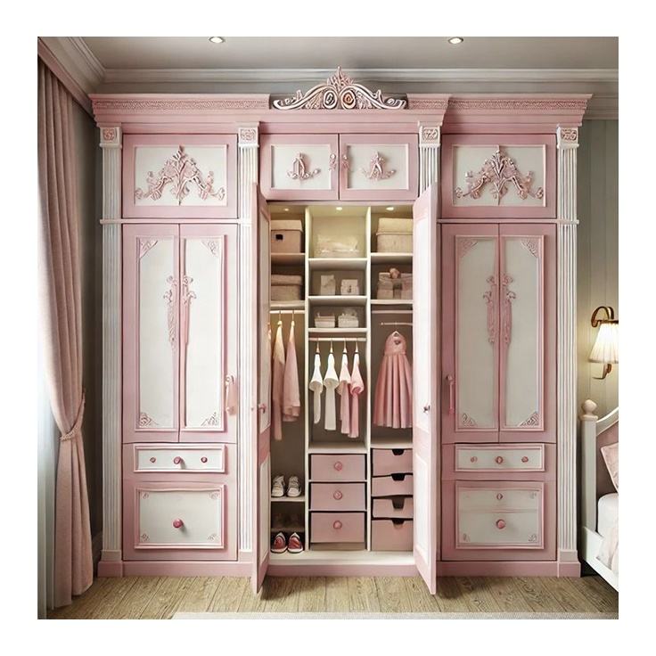 A buon mercato camera da letto rosa per bambini guardaroba in legno piccola porta singola in legno Baby Girl Design guardaroba con serratura