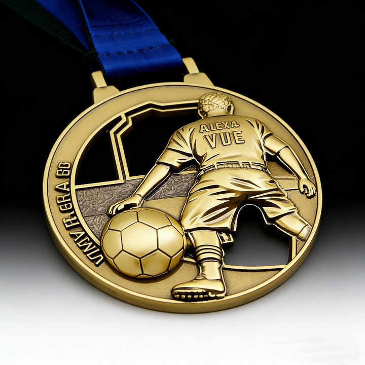 Medaglia da Calcio Personalizzata Economica in Offerta Speciale, Medaglia da Calciatore Intagliata con Nome e Logo Incisi per Premi di Tornei