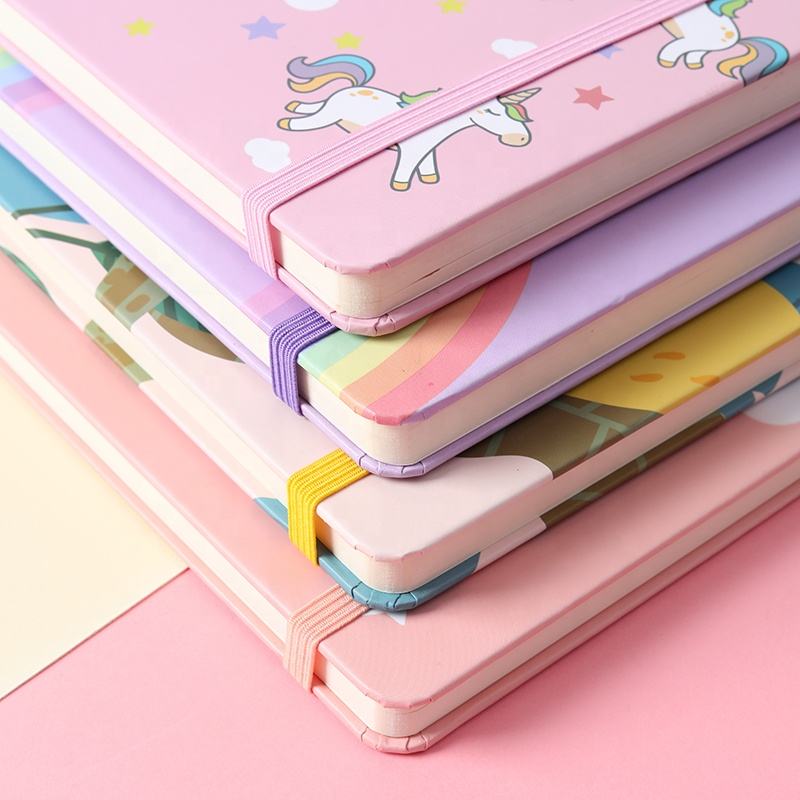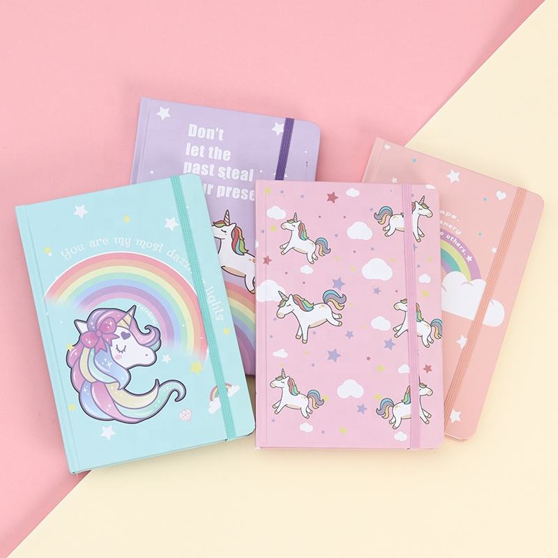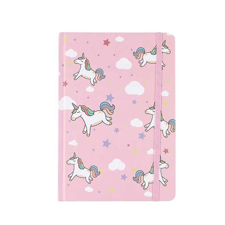 Cheap Hardcover Unicorn A5 Notebook With Elastic Band for Girl Student School 192 Pages 80 Gram Paper