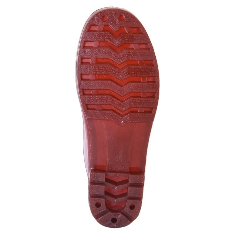 Stivali da pioggia impermeabili in PVC di moda con tacco alto e altezza al ginocchio rosso lucido a buon mercato per lavoratore