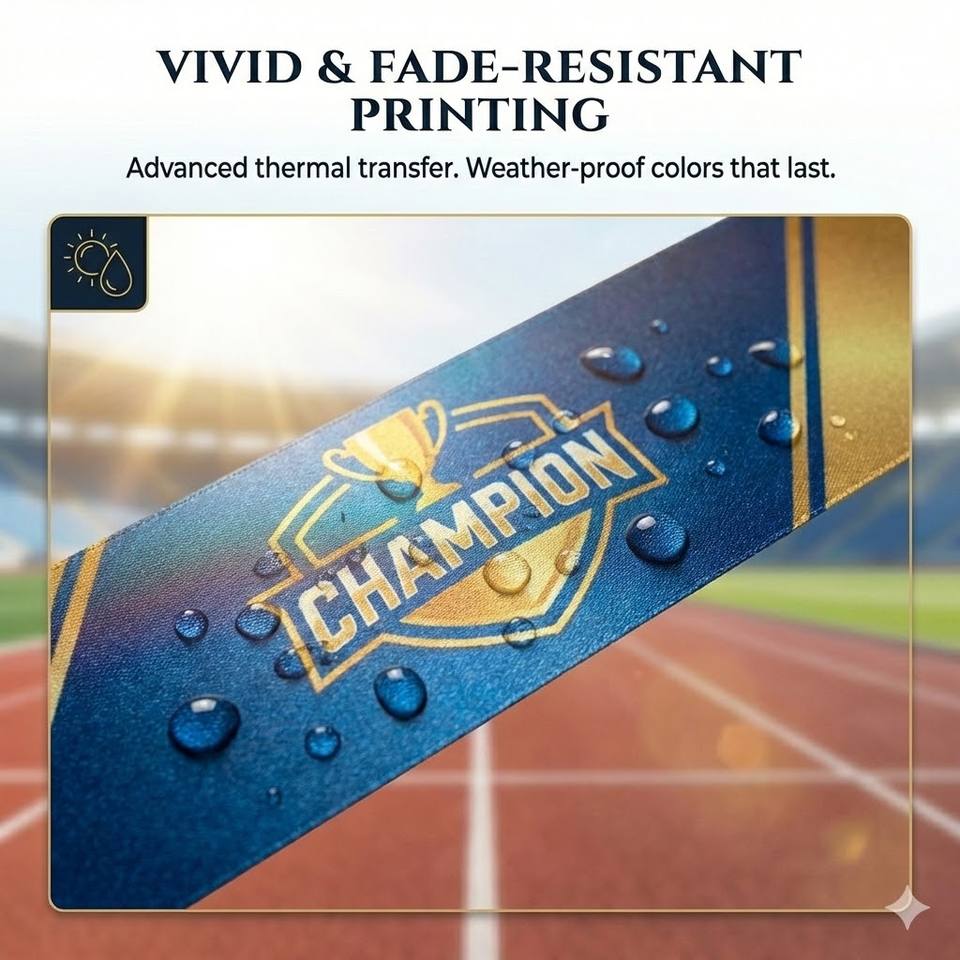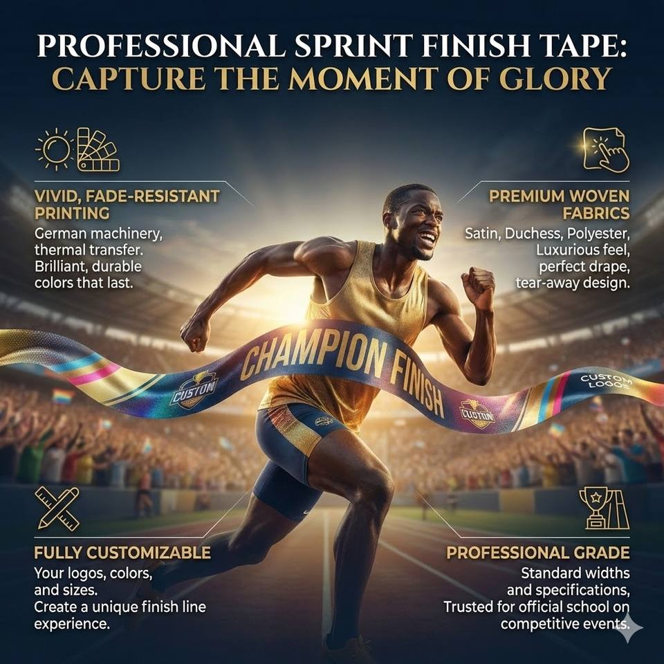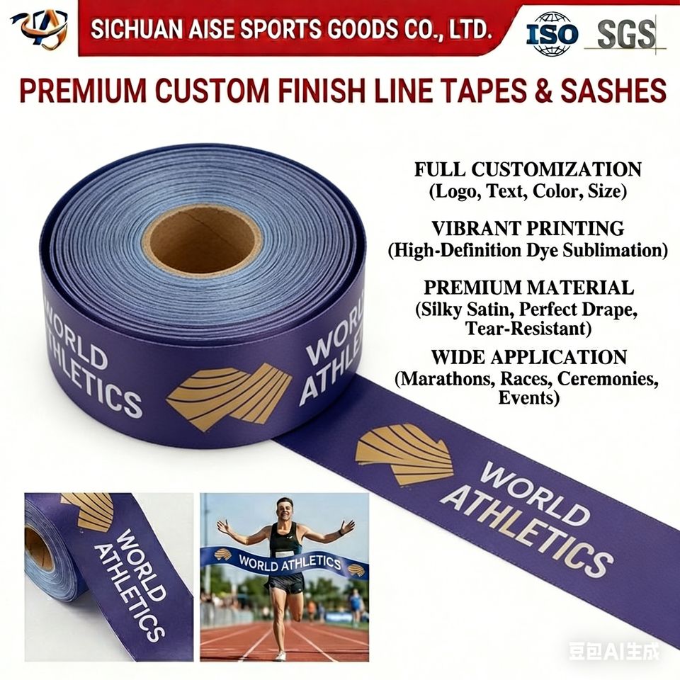Cheap Plain Custom Printed Polyester Satin High Visibility Sprint Finishing Tape for School Sports Day Running Competition