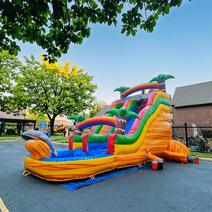 Prezzo a buon mercato 18 piedi scivolo d'acqua luna rimbalzo gonfiabile con acquascivolo doppio scivolo gonfiabile