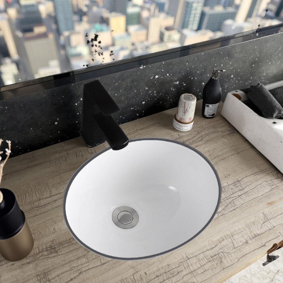 Prezzo a buon mercato in ceramica lavandino da bagno forma rotonda sotto-bancone lavabo senza foro lavello ovale sotto lavandino in porcellana