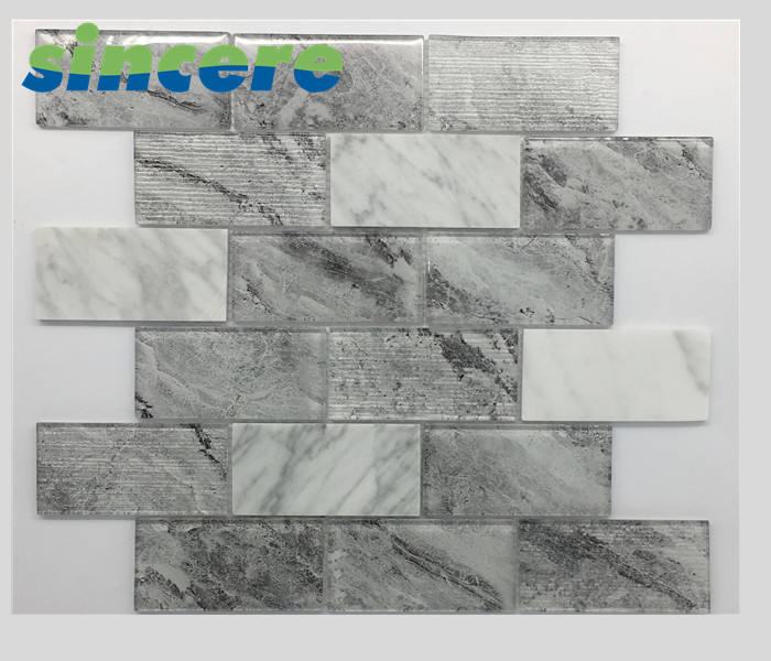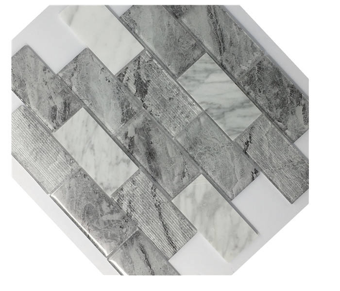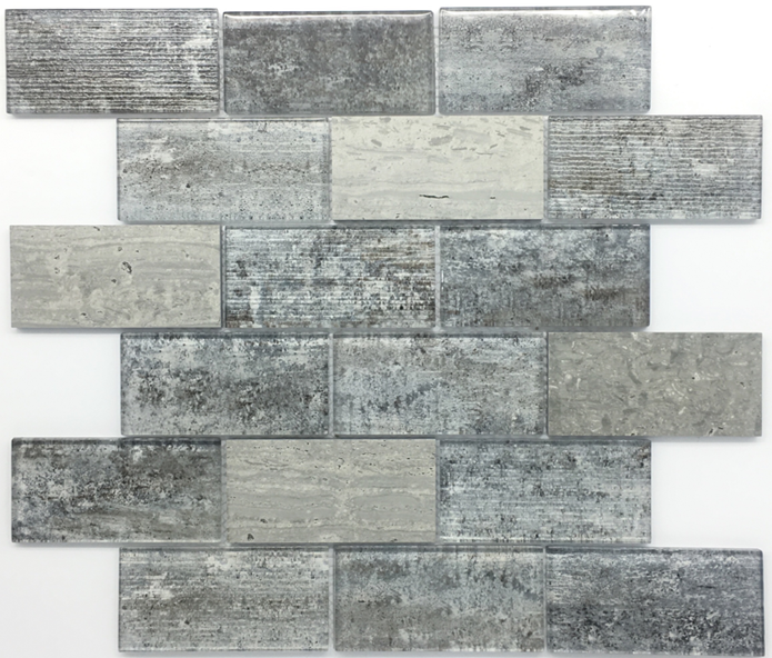 Piastrelle Rettangolari in Mosaico di Vetro Grigio e Bianco per Paraschizzi Cucina a Prezzo Conveniente