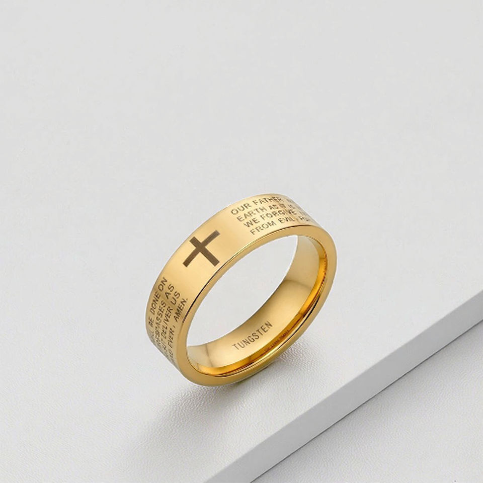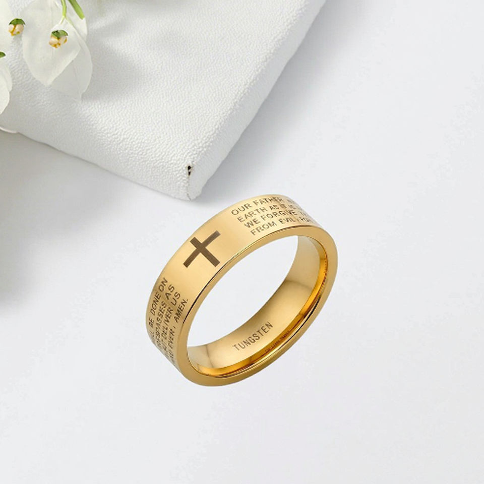Cheap Price Men's Gold Plated Tungsten Ring Lords Prayer Rings