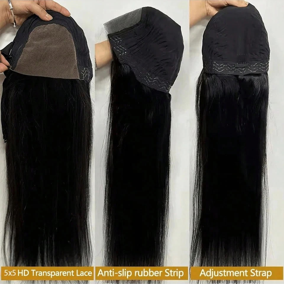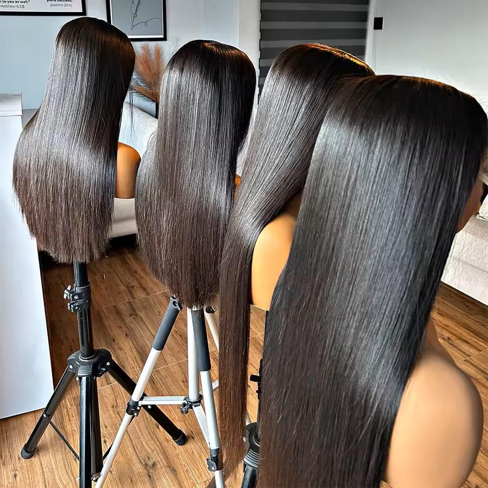 Parrucche economiche in capelli umani brasiliani grezzi, con frontale in pizzo trasparente, liscio come seta, HD, per donne, lunghe e nere