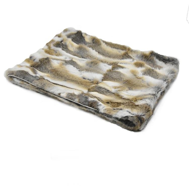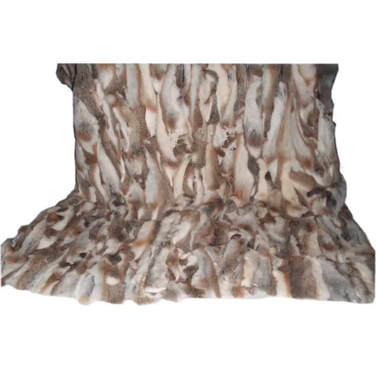 A buon mercato vera pancia di coniglio pelliccia di peluche naturale modello grezzo in marrone & grigio per divano letto animale pelliccia di categoria di prodotto