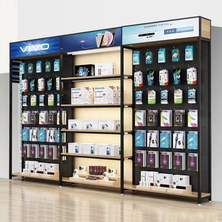 Accessori mobili per negozi di riparazione al dettaglio economici Stand struttura in metallo accessori per telefoni espositore con Lightbox