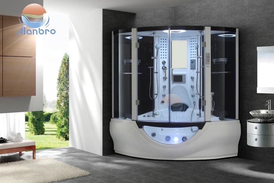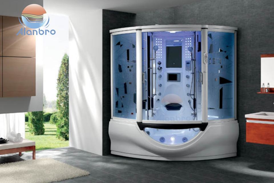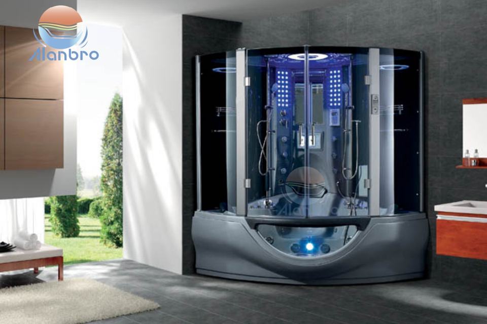 Cabina Doccia a Vapore Economica con Telaio Scorrevole in Alluminio e Vasca Idromassaggio per 2-3 Persone