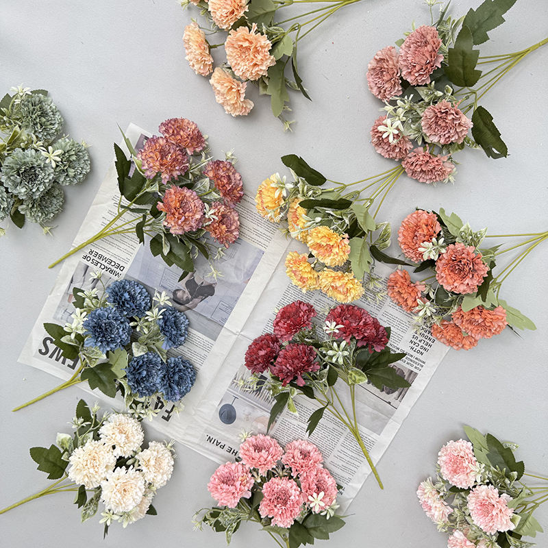 Cheap Wholesale 5-Head Simulated Carnation Flowers Nora Carnation Artifical Flowers Decorative