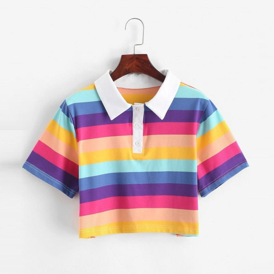 A buon mercato da donna arcobaleno a righe Crop Top traspirante estetica t-shirt corta da Golf Tee piccole tuniche stampate Top per donna