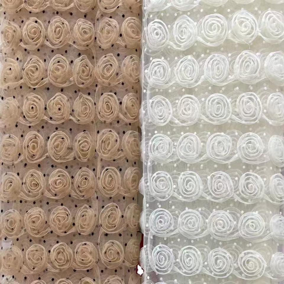 Più economico tessuto a volant floreale rosa bianca con volant in Tulle a rete con volant Cake 3D tessuto di pizzo ricamato