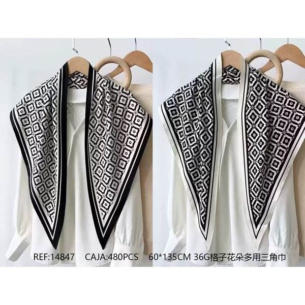 Sciarpa triangolare multiuso a quadri floreali 60x135cm 36G per donna, accessorio moda