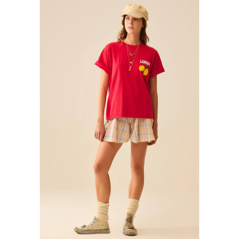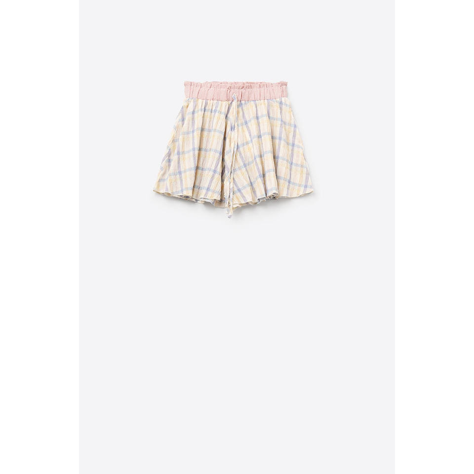 Checkered Flowy Short With Drawstring Waistband Multi-Color