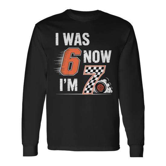 Maglietta a Maniche Lunghe a Quadri per Ragazzi di 7 Anni, Regalo di Compleanno, 'Ero 6, Ora Sono 7', Prodotto Promozionale con Stampa Digitale