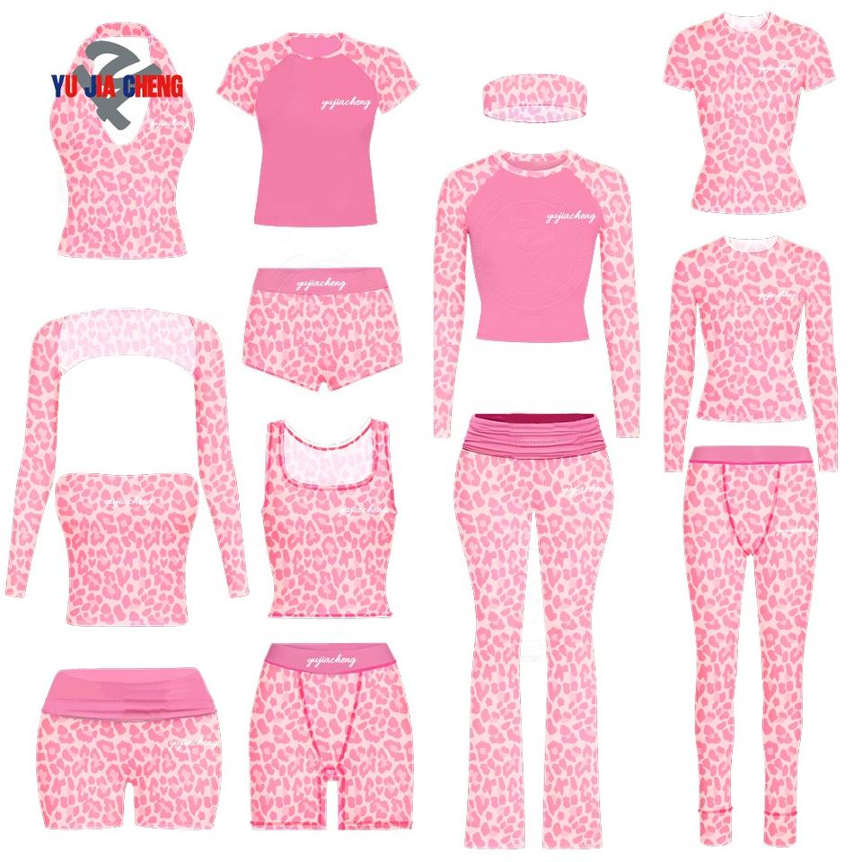 Completo Due Pezzi con Stampa Ghepardo e Blocchi di Colore, T-Shirt con Maniche Raglan e Pantaloncini Rosa Leopardati Personalizzati per Donna, Abbigliamento Casual