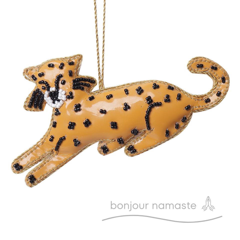 Cheetah Snow Leopard Christmas Ornament Handcrafted Embroidery | Modern Elegant Sustainable Eco-Friendly Handmade Beaded Artisan