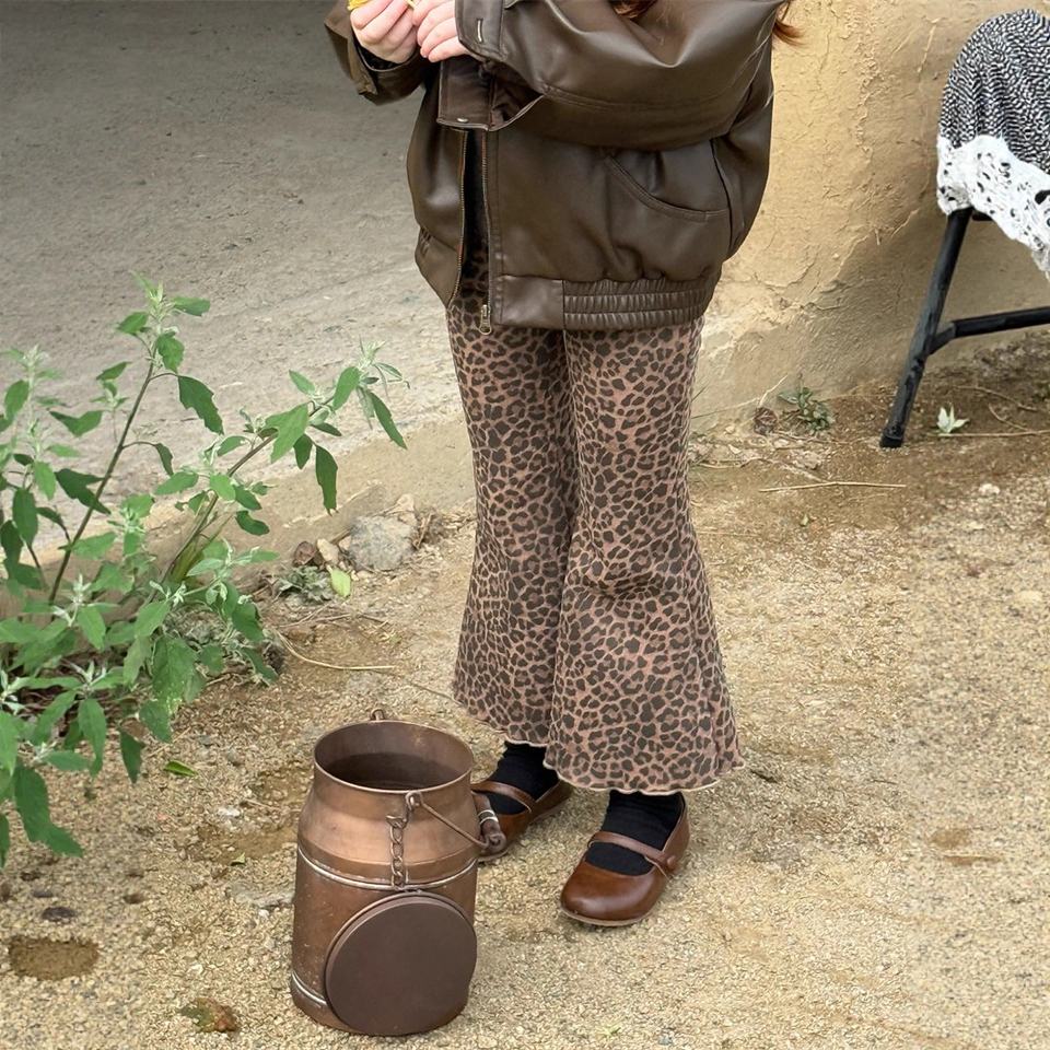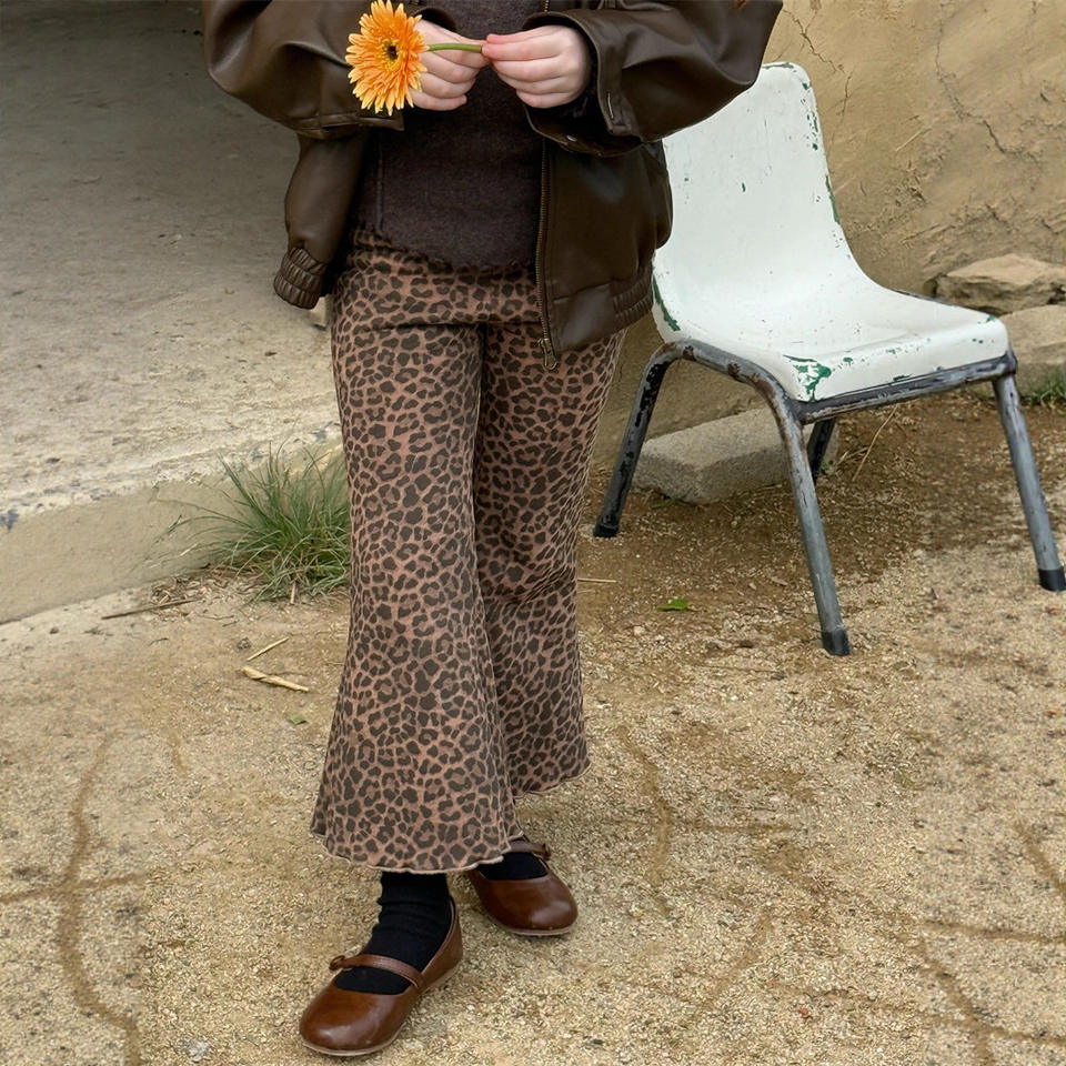 Pantaloni Invernali Chengle25 per Bambine, Stile Coreano, Spessi, con Stampa Leopardata, in Misto Cotone, Eleganti a Vita Alta e Gamba Larga