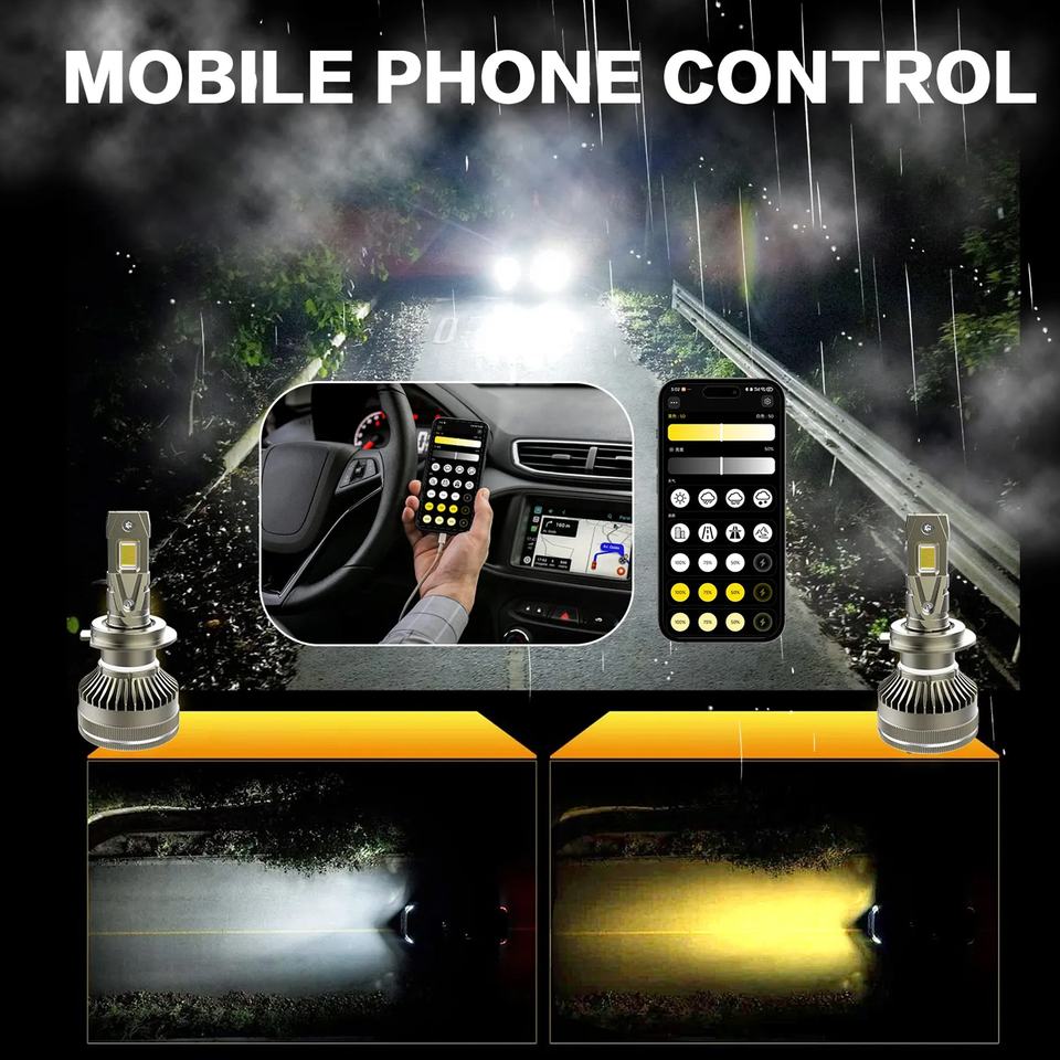 Lampadina LED per Fari Auto Chenlang 140W, Abbaglianti e Anabbaglianti H4 H7 9005 H13 H11 9006, Controllo App, 3000K-6000K