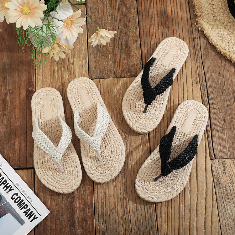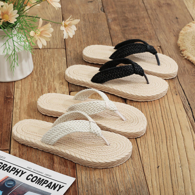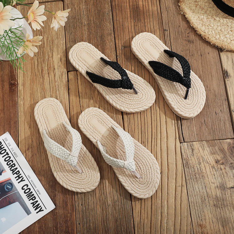 Chenxiaomo Infradito Estive Stile Coreano da Spiaggia con Punta Aperta, in Paglia Sintetica Intrecciata, Traspiranti e Leggere per Ragazze