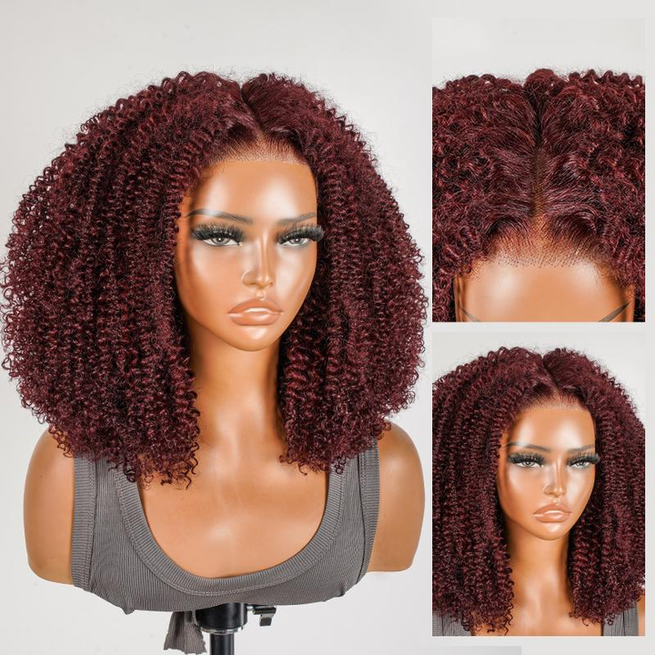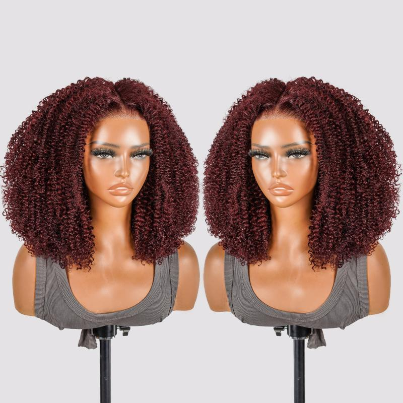 Parrucca in Capelli Umani Brasiliani Ricci Afro Rosso Cola, Senza Colla, Chiusura in Pizzo Pretagliata 7x5, Alta Densità, Vendita all'Ingrosso