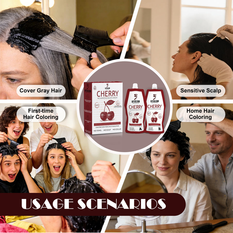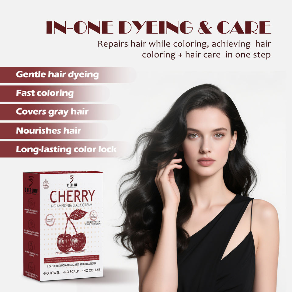 Tinta per Capelli Cherry Dyeglow 500ml*2 con Estratti Vegetali, Non Macchia Cuoio Capelluto e Collo, Nutriente, Copertura Rapida del Bianco, Adatta per Pelli Sensibili