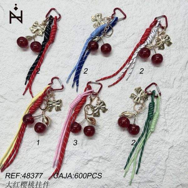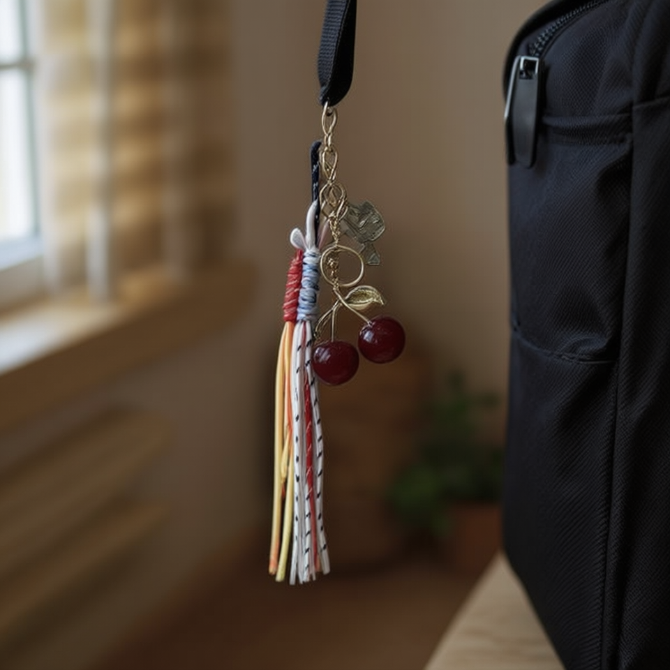 Portachiavi a forma di ciliegia con nappa e ciondolo in metallo per decorazione