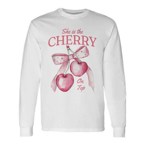 T-shirt a maniche lunghe Cherry On Top per baby shower o addio al nubilato