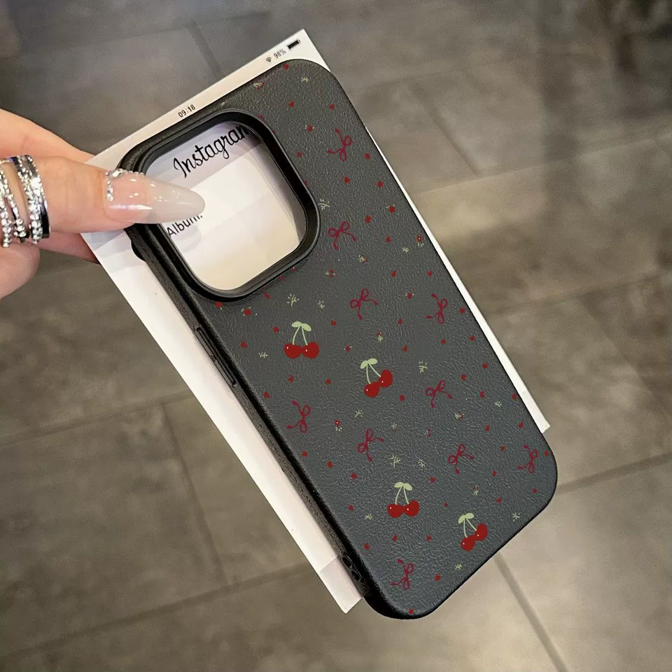 Custodia per iPhone con motivo ciliegia per iPhone 11, 13, 15, 14, 12, 16 Pro Max, 14, 15 Plus, antiurto, in morbida pelle TPU, con simpatico cuore e fiocco